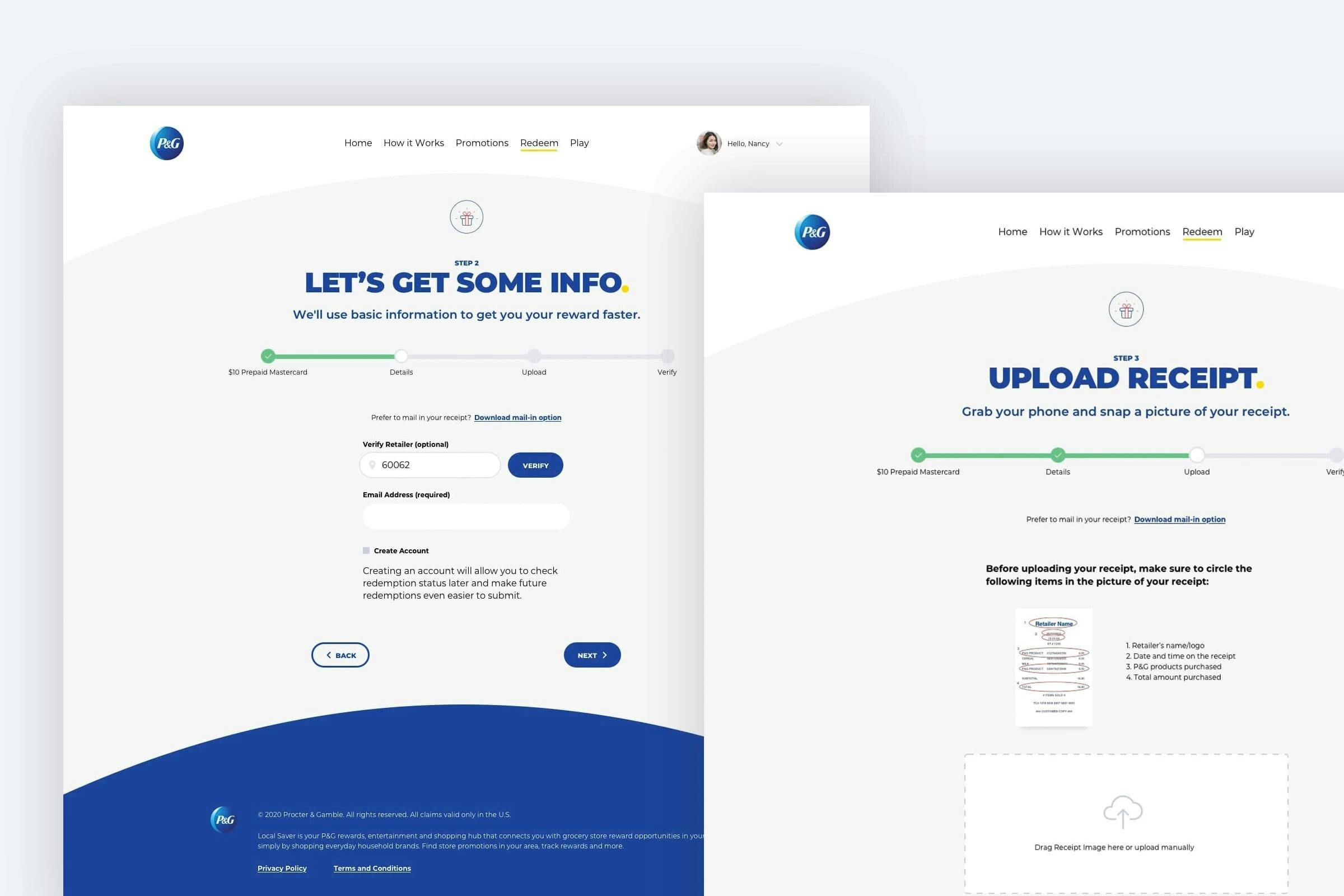 We would create a generic P&G branded landing page as well as optional themed pages specific to the grocery store brand.