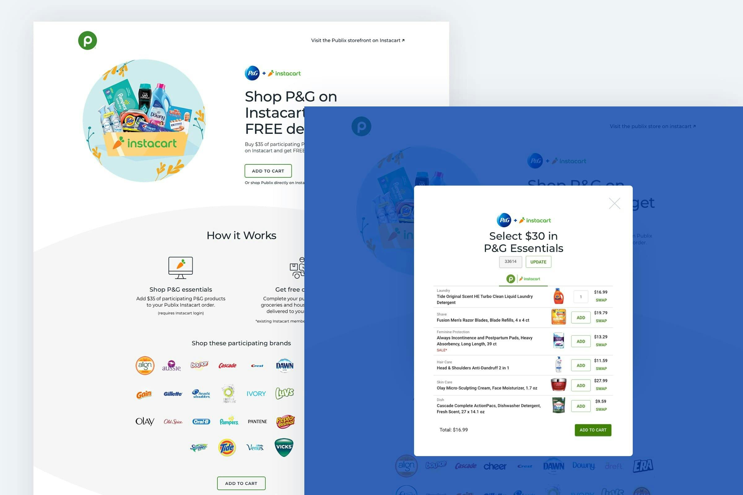 P&G wanted to offer regional grocery stores the ability to drive traffic to their instacart sites while also putting the focus on P&G products.